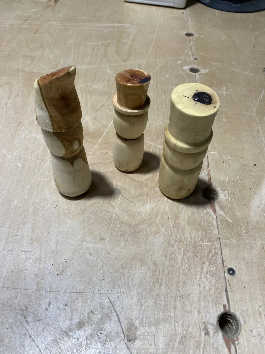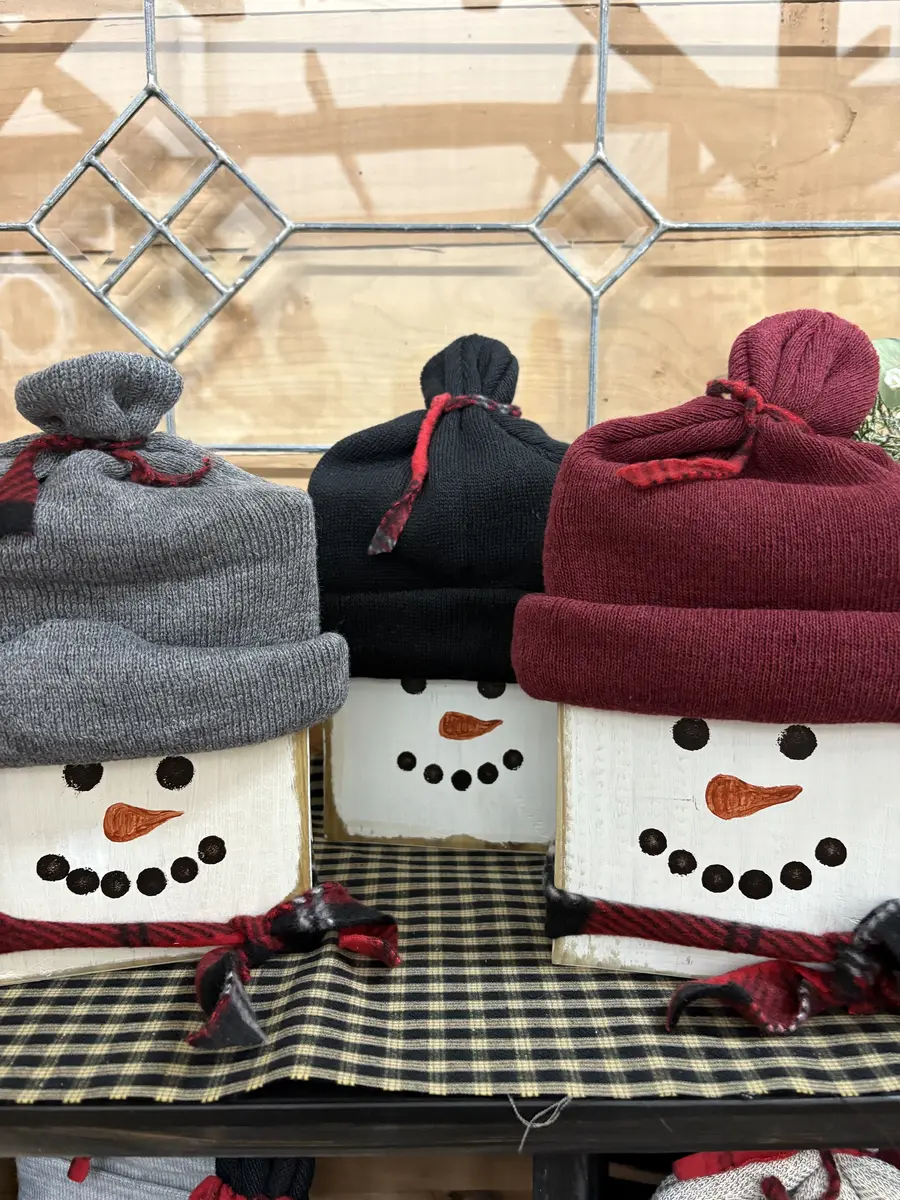 Wood snowman heads with hat and scarf