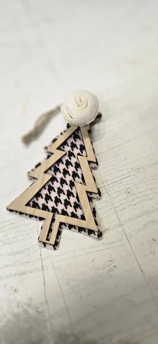 Houndstooth Christmas Tree Ornament with wood flower