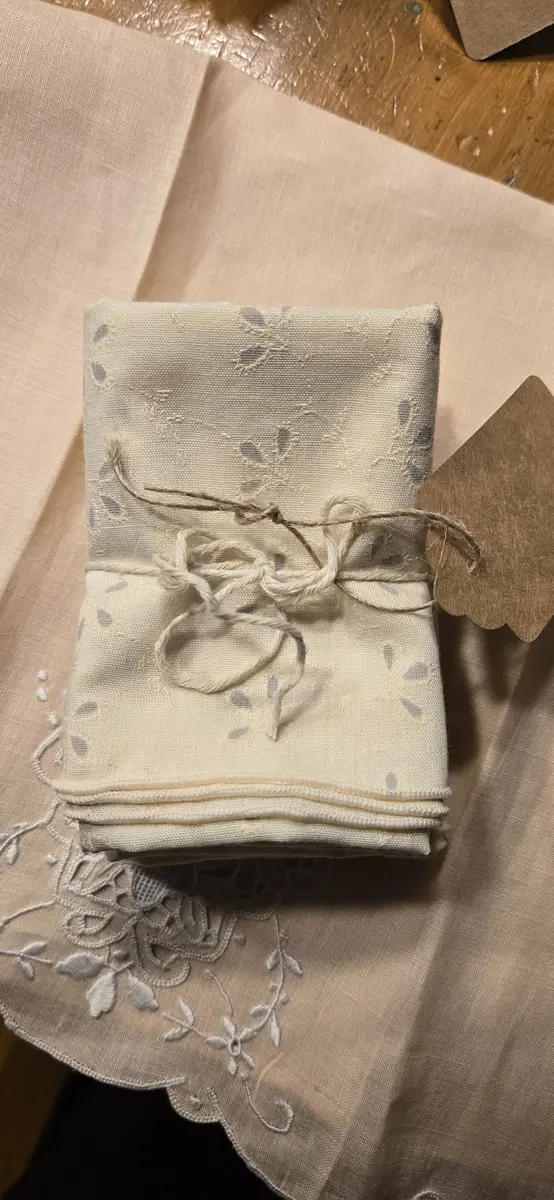 Set of 4 Linen Tea Towels w Eyelet Embroidery