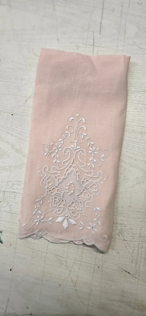 Pink Linen Embroidered Tea Towel
