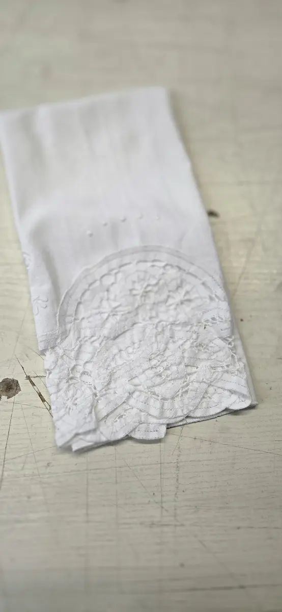 White Tea Towel Embroidered Floral Trim