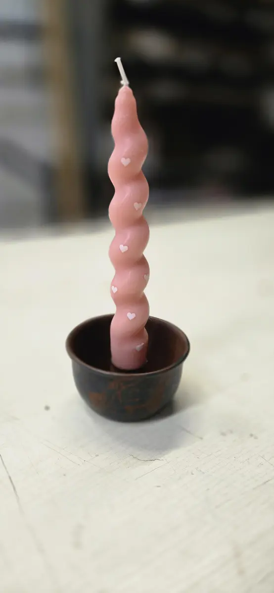 Rustic Taper Candleholder w Pink Heart Candle