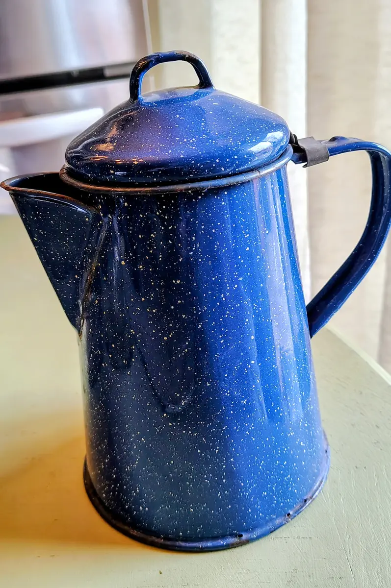Vintage Blue Speckled Enamel Coffee Pot kw