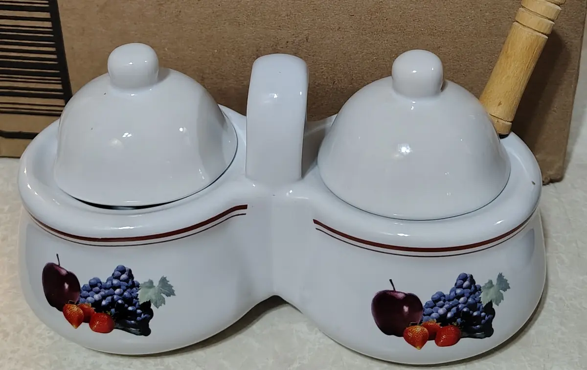 Vintage Double Condiment Server & Spoon kw