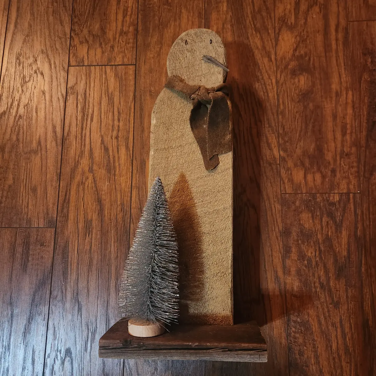 Primitive wooden snowman w/tree,' in.