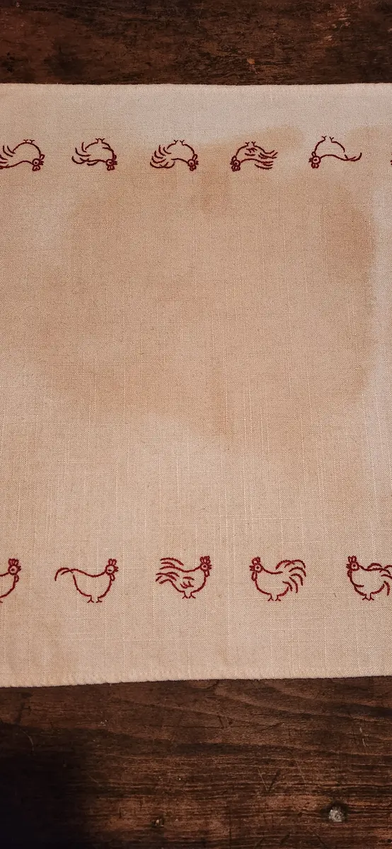 "Yardbird" linen w/ red embroidery