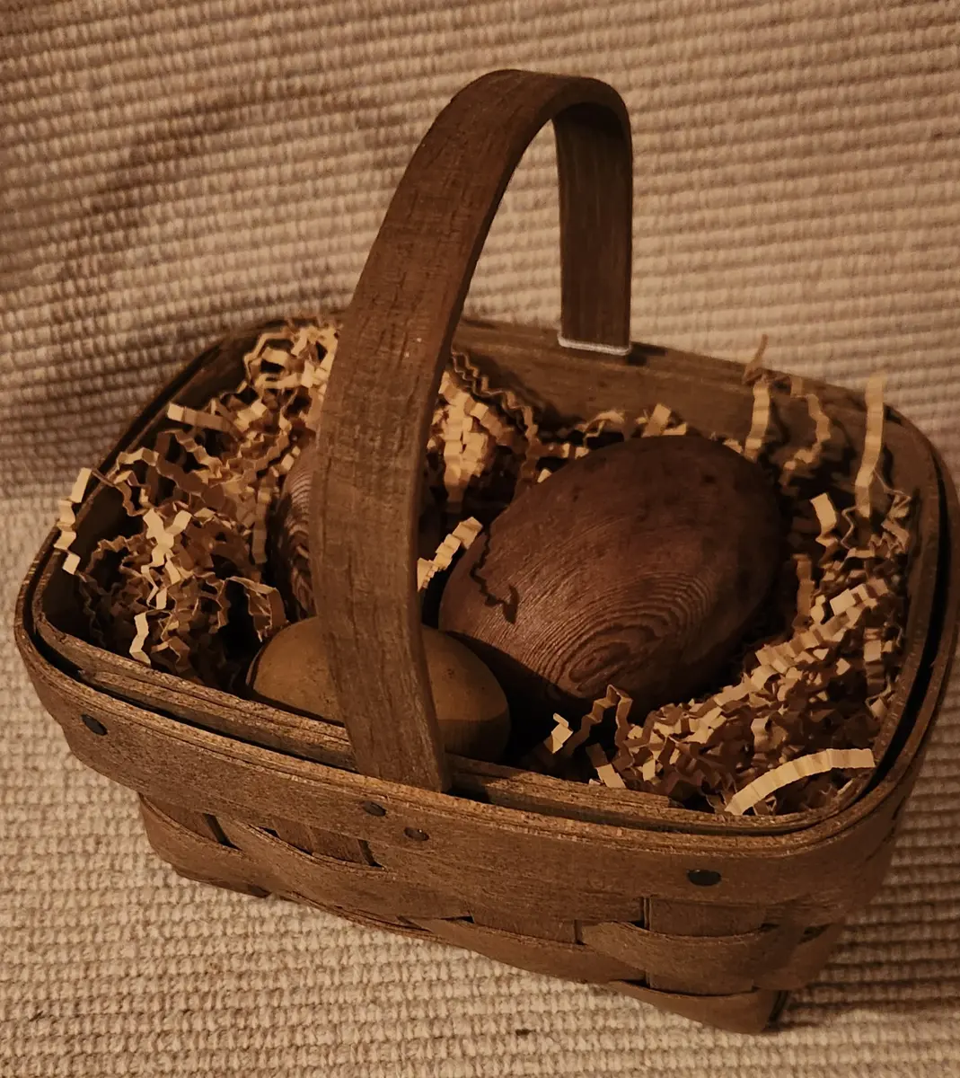 Rustic basket w/ 3 wooden eggs