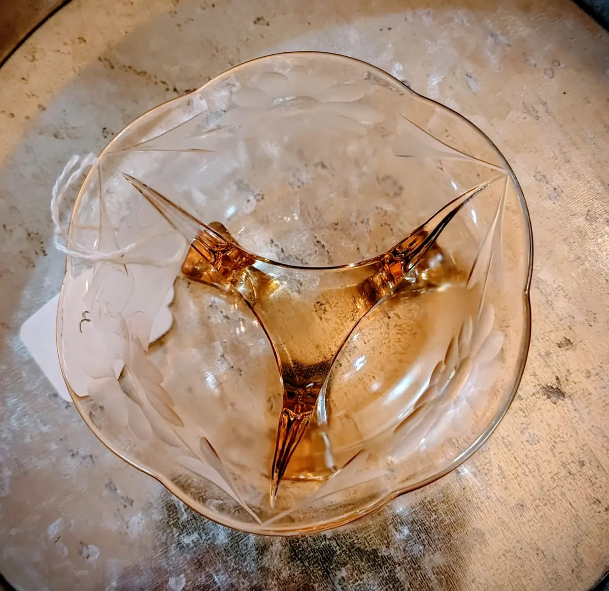 Pink Etched Depression Glass Small Footed Bowl kw