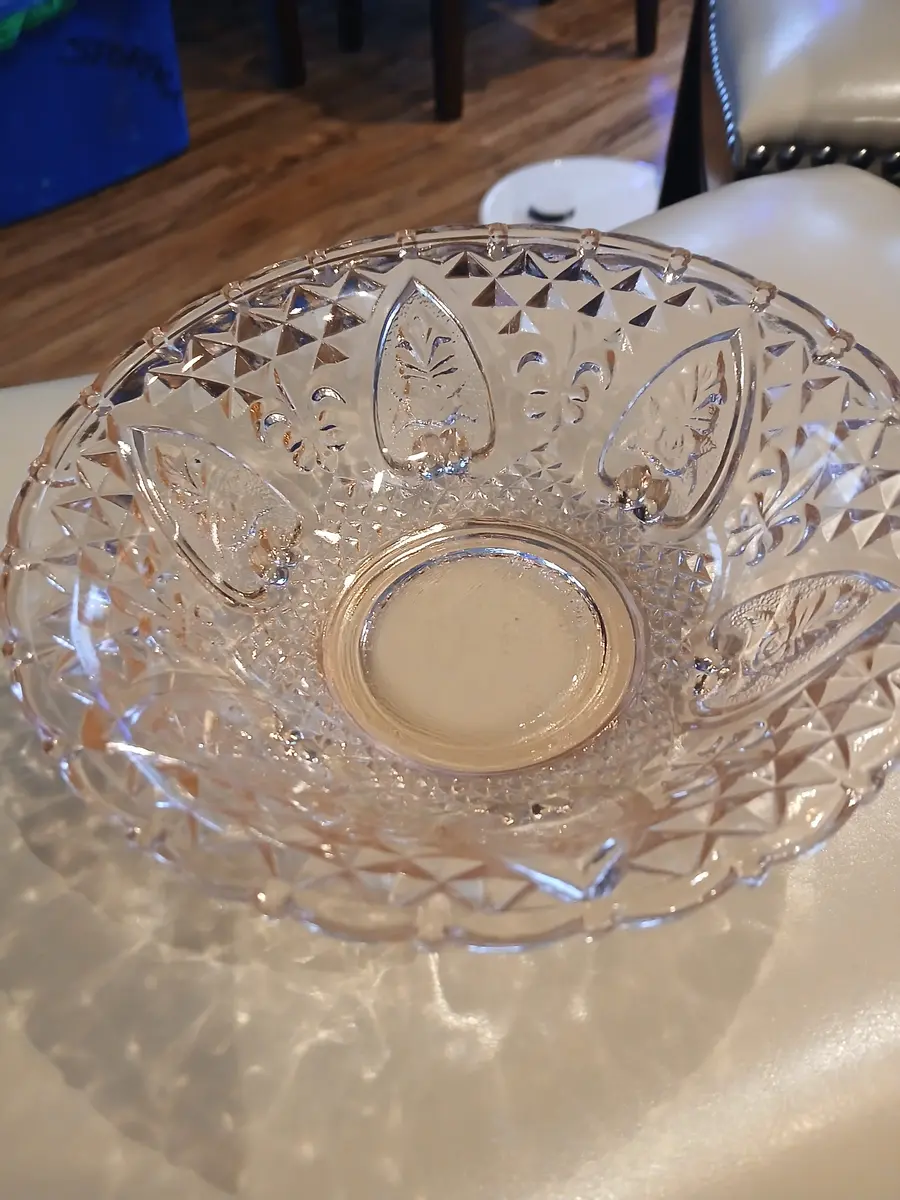 Vintage pink malaysia cut glass footed bowl