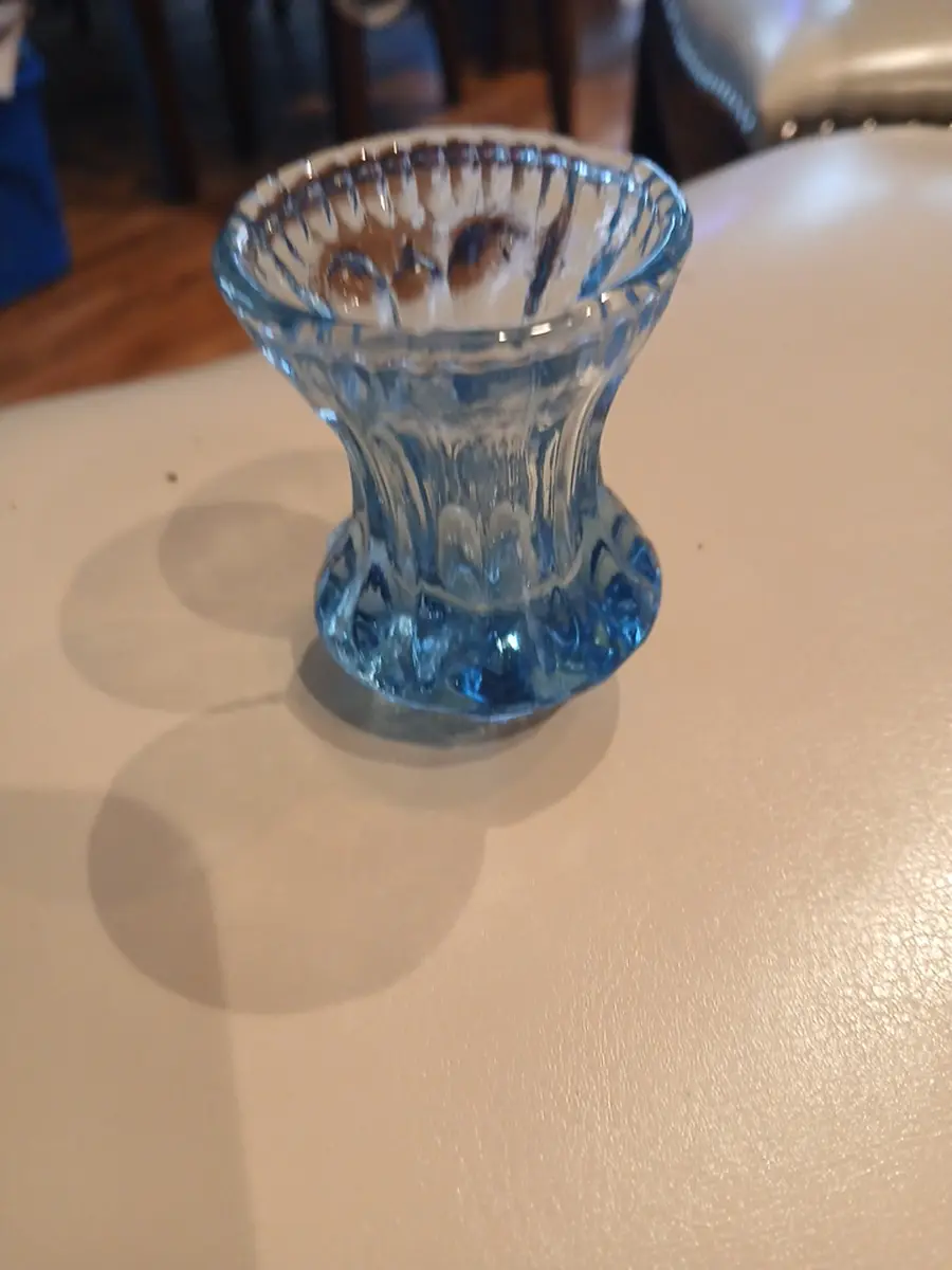 Vintage small blue glass toothpick holder