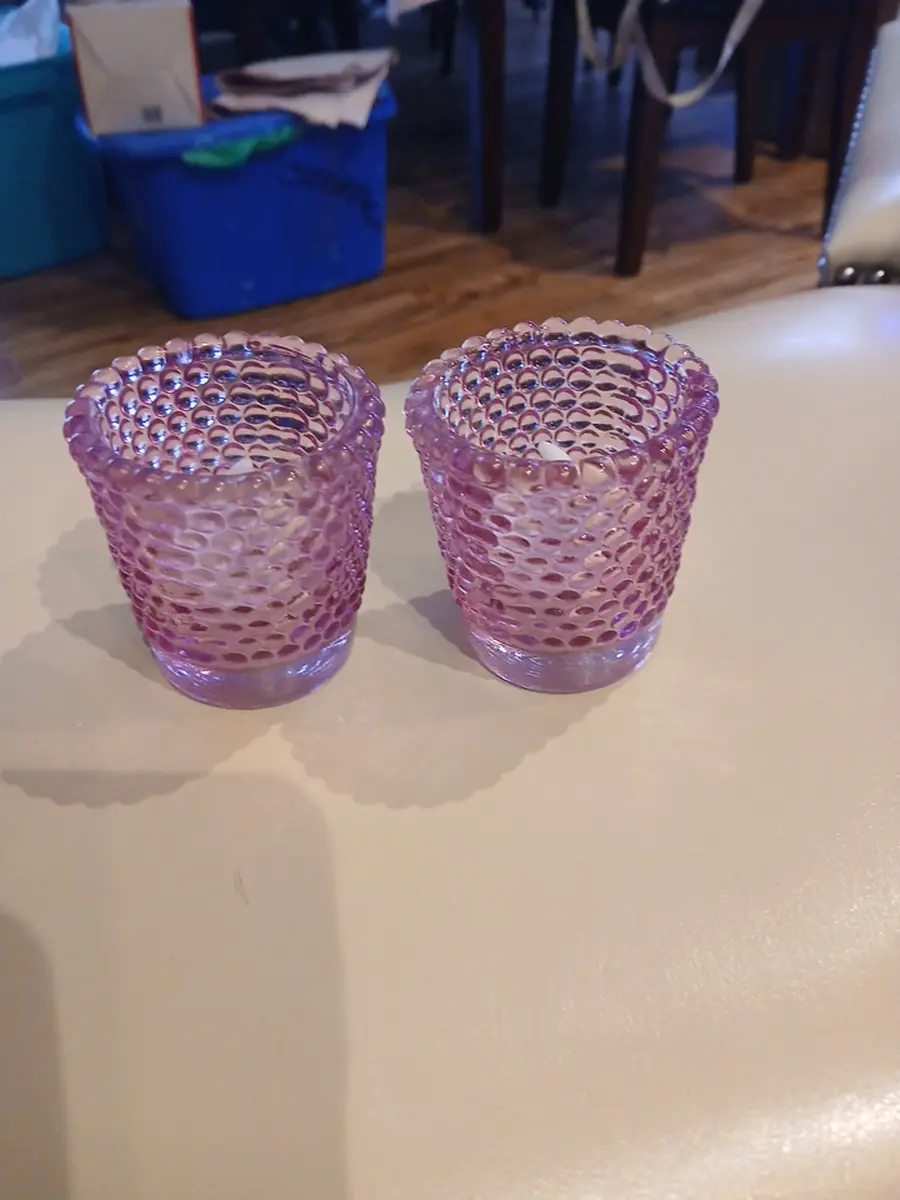 2 vintage pink hobnail votive holders