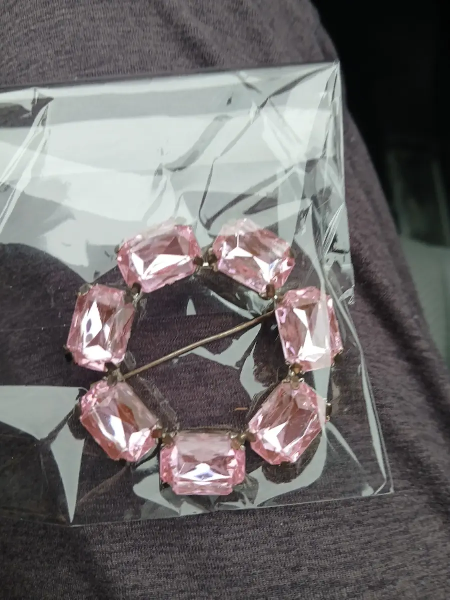 Vintage pink rhinestone Czech circle brooch