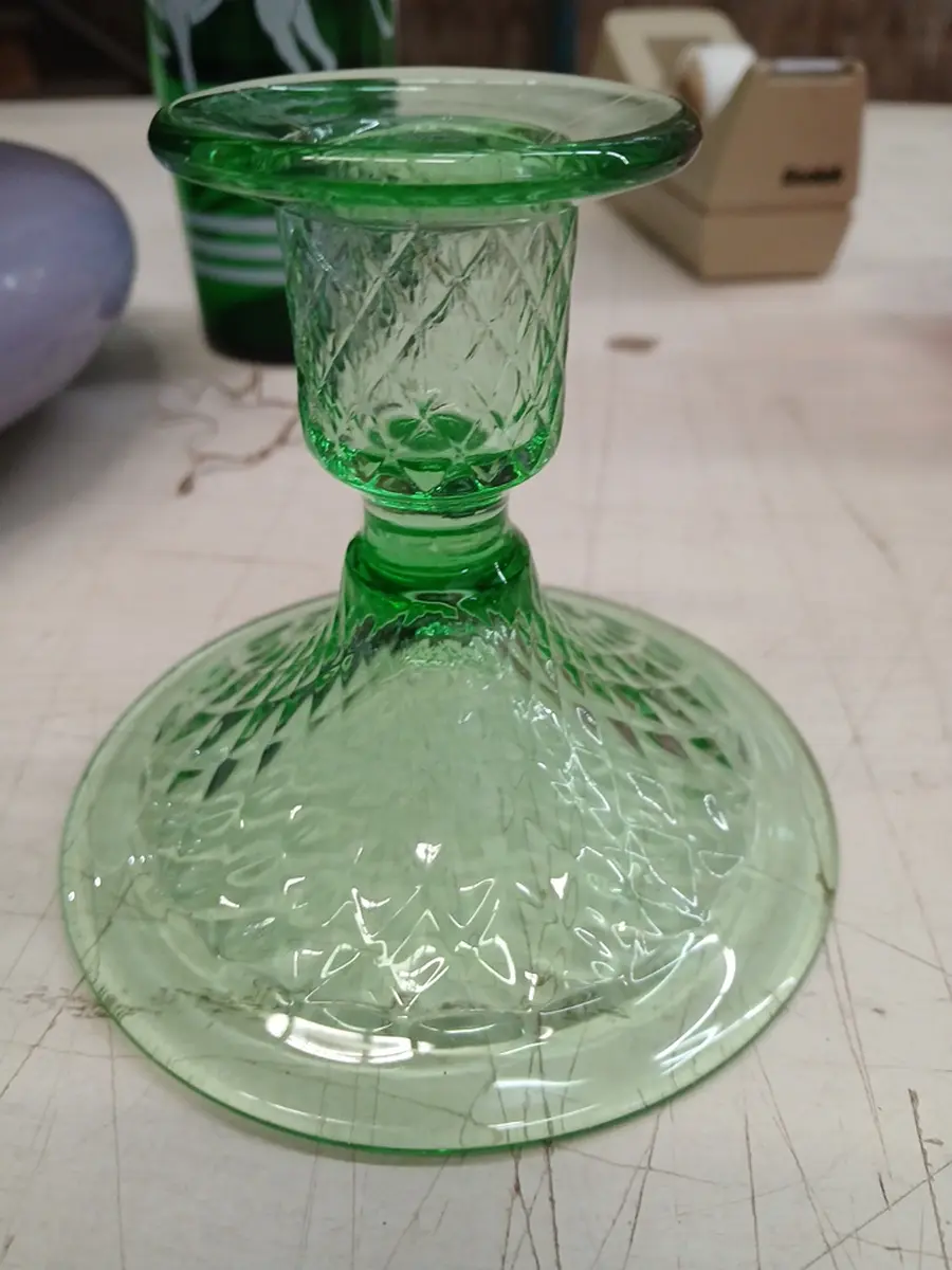 Green depression glass candlestick