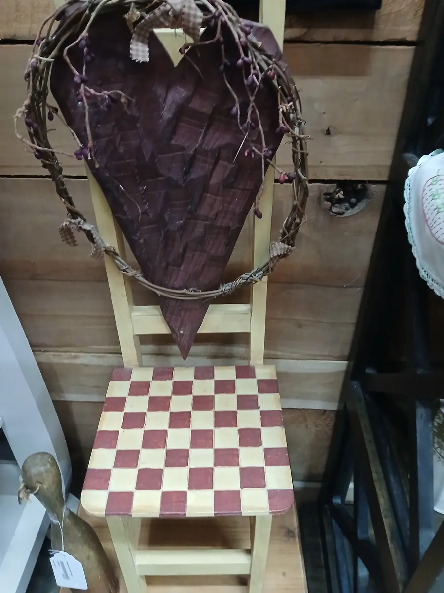 Primitive red checkered hearr chair