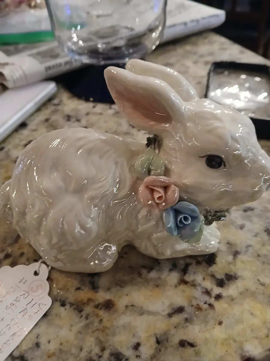 Vintage pearl iridescent rabbitt with flowers