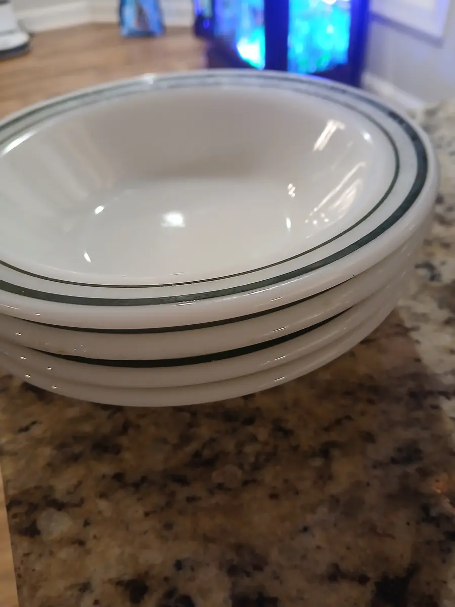 4 Vintage Pyrex tableware by corning 6 in bowls double green stripe