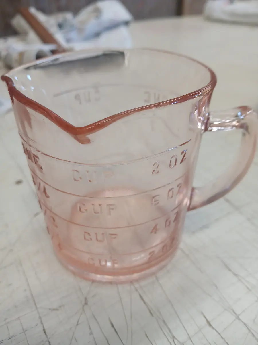 Vintage Kellogg pink measuring cup - chipped