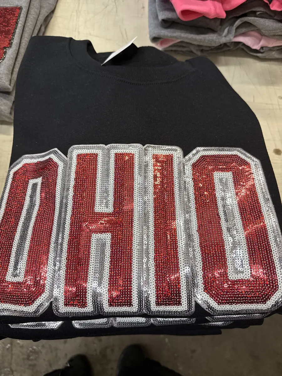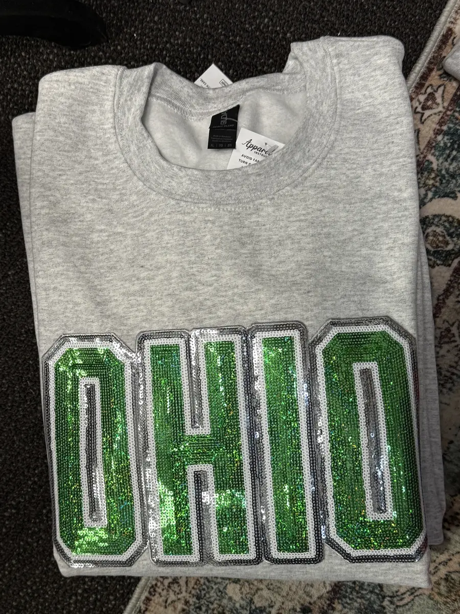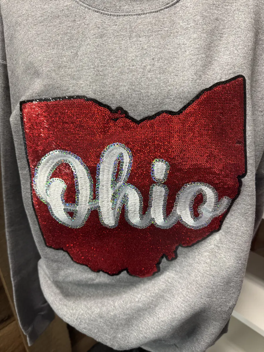 Lg sequin Ohio grey crew