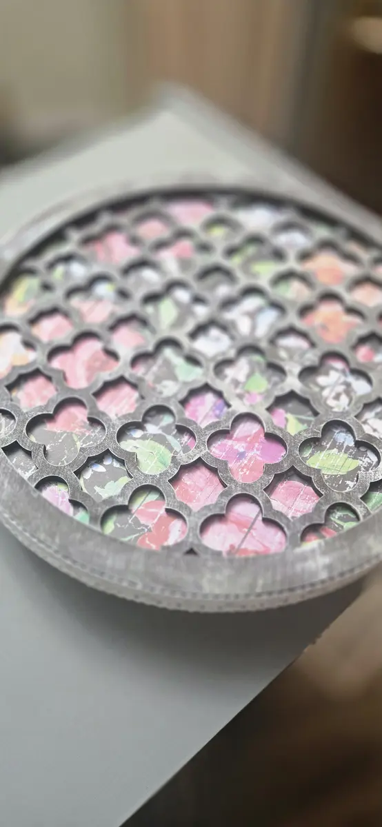 Lattice Tray Round Candleholder Floral