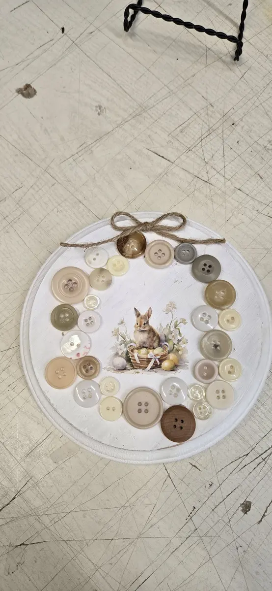 Bunny Button Wood Circle Plaque