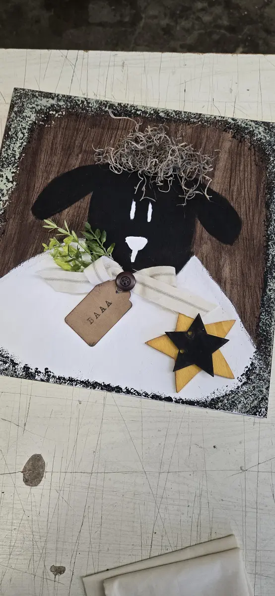 Hand Painted Sheep Rustic Wood Sign