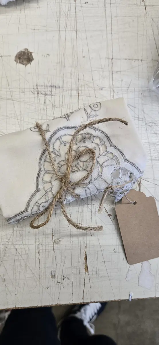Set of 2 Tea Towels Eyelet Floral Design Beige