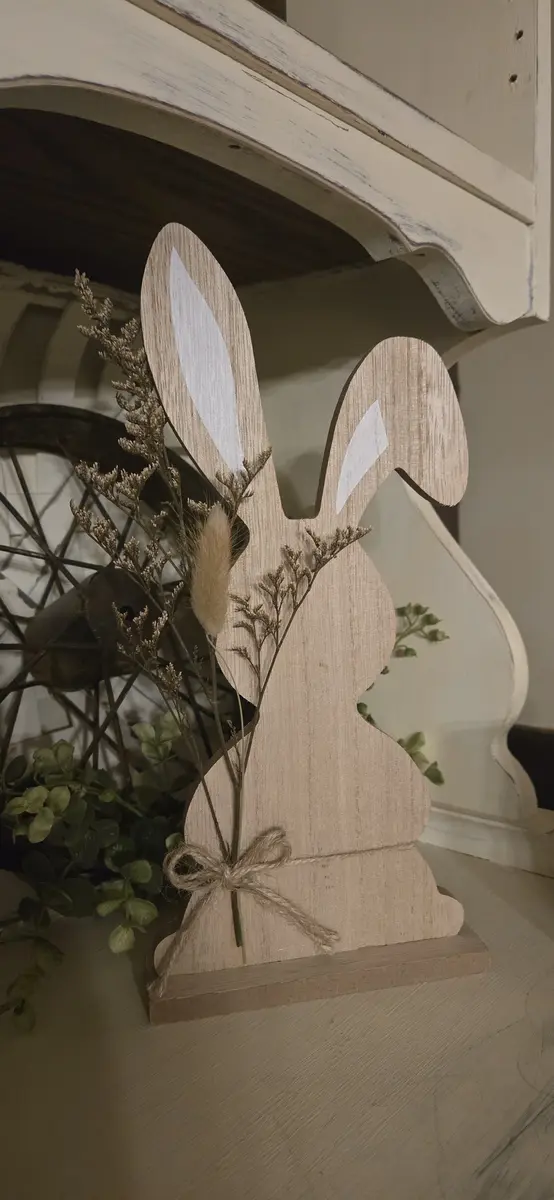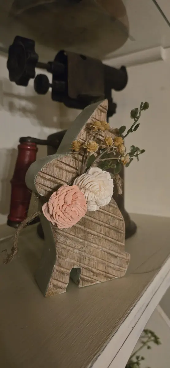 Wood Bunny Sitter w Natural Florals