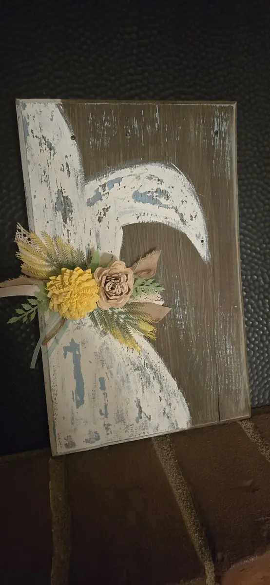 Handpainted Bunny Rabbit w Wood Flowers Sign
