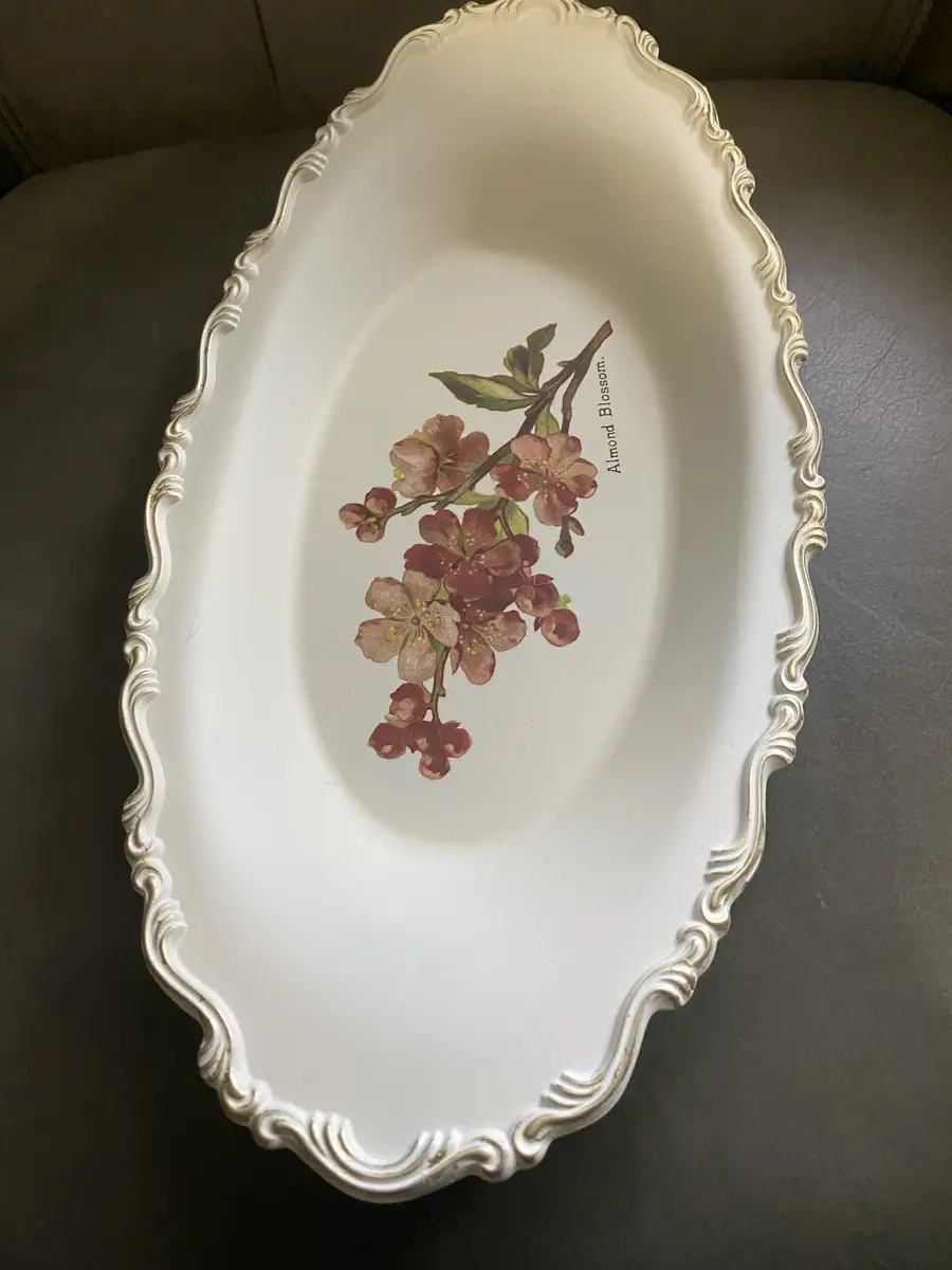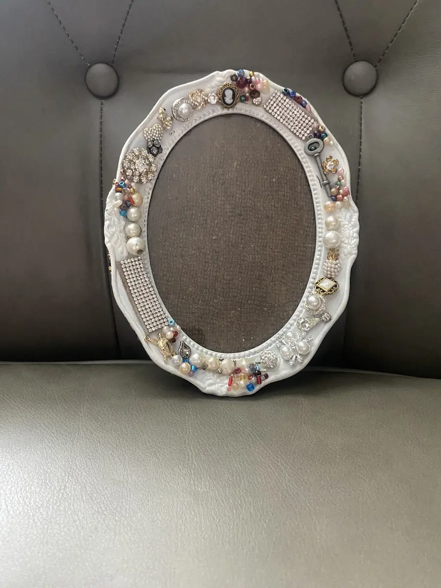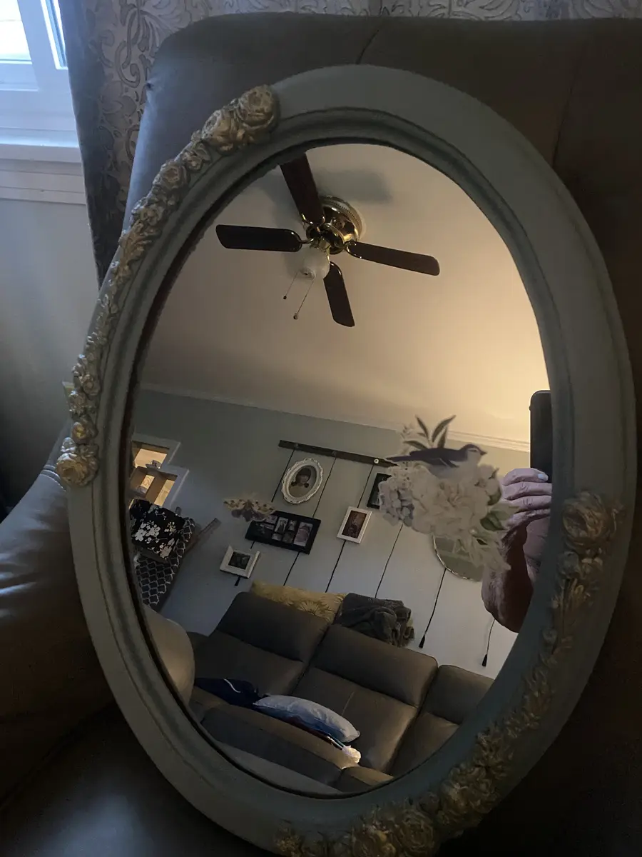 Mirror with clay roses on frame with gold gilding wax and bird transfer
