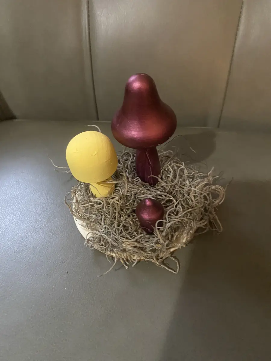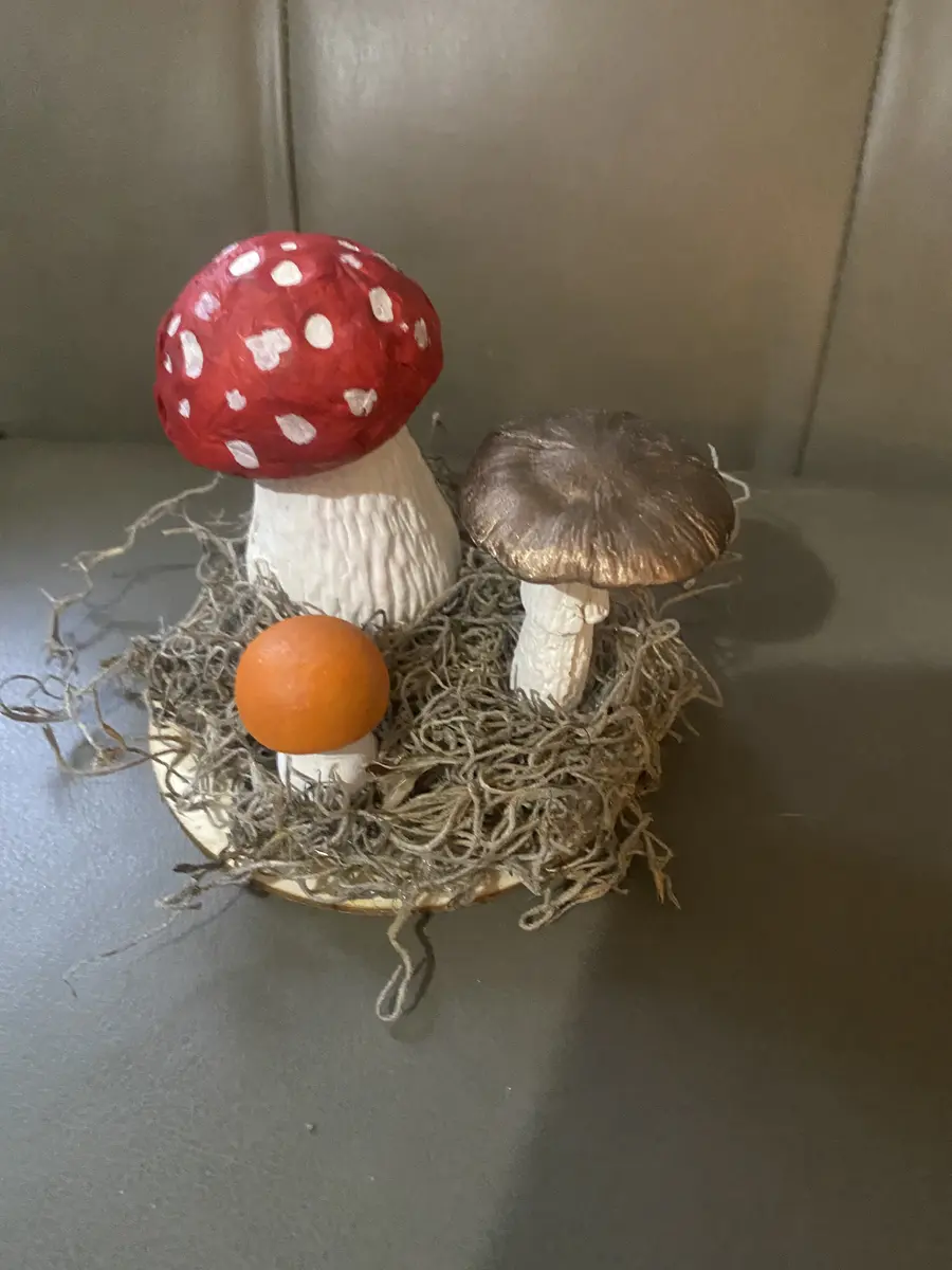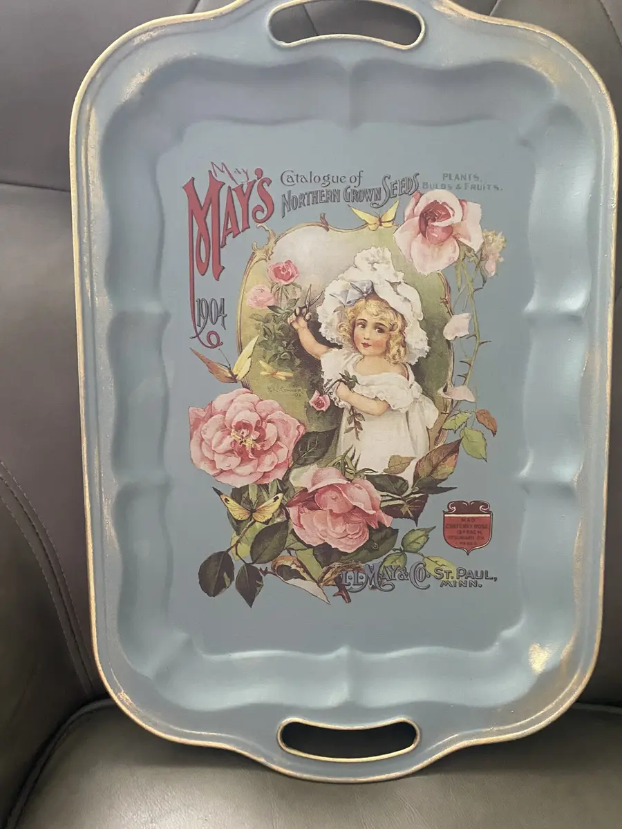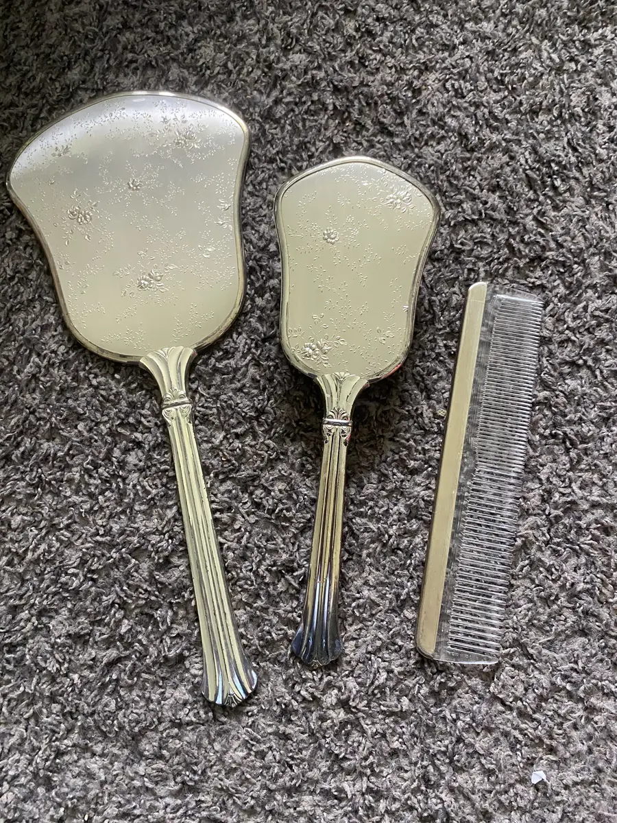 Mirror with clay roses on frame with gold gilding wax and bird transfer