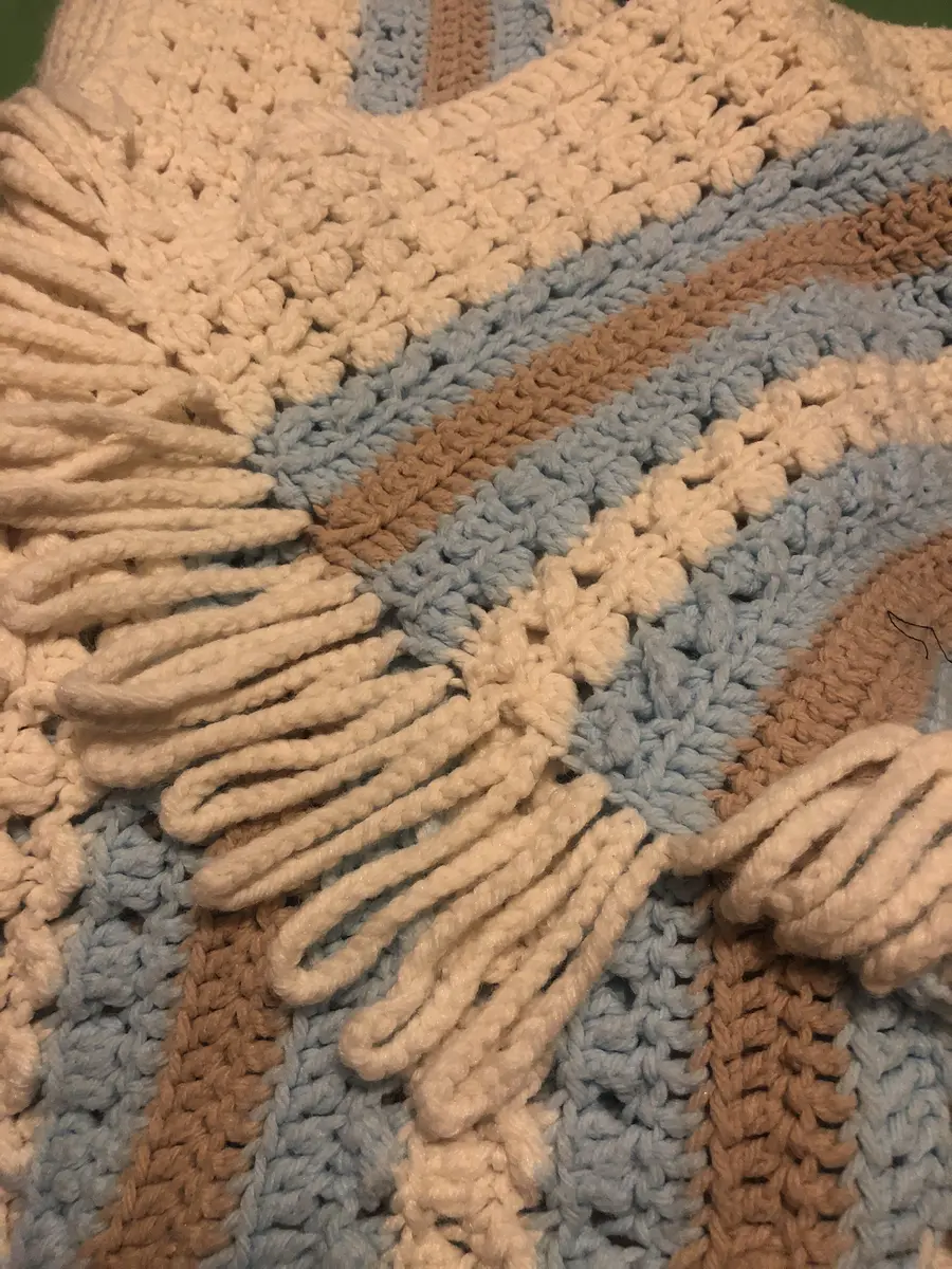 Handmade Blanket Ivory and Winter Blue