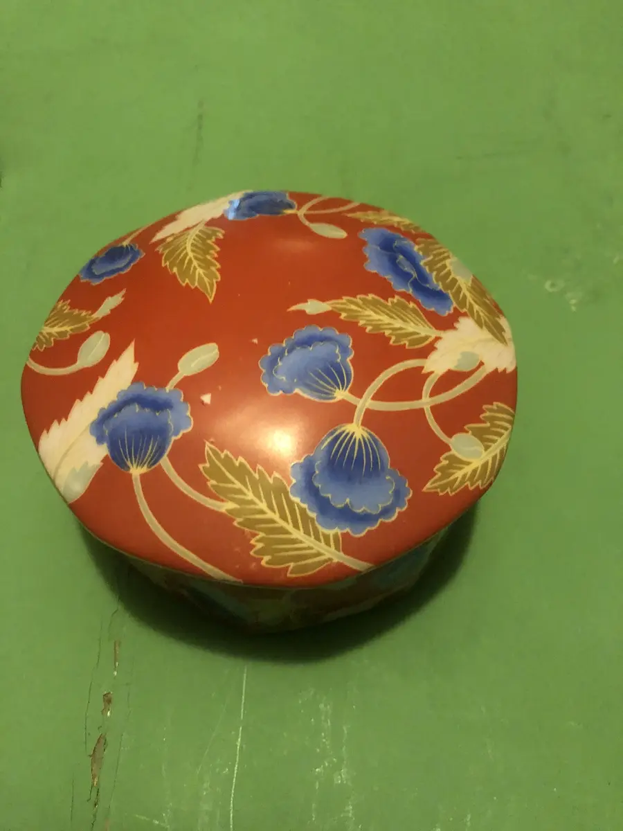 Orange and Blue Floral Lidded Trinket Dish