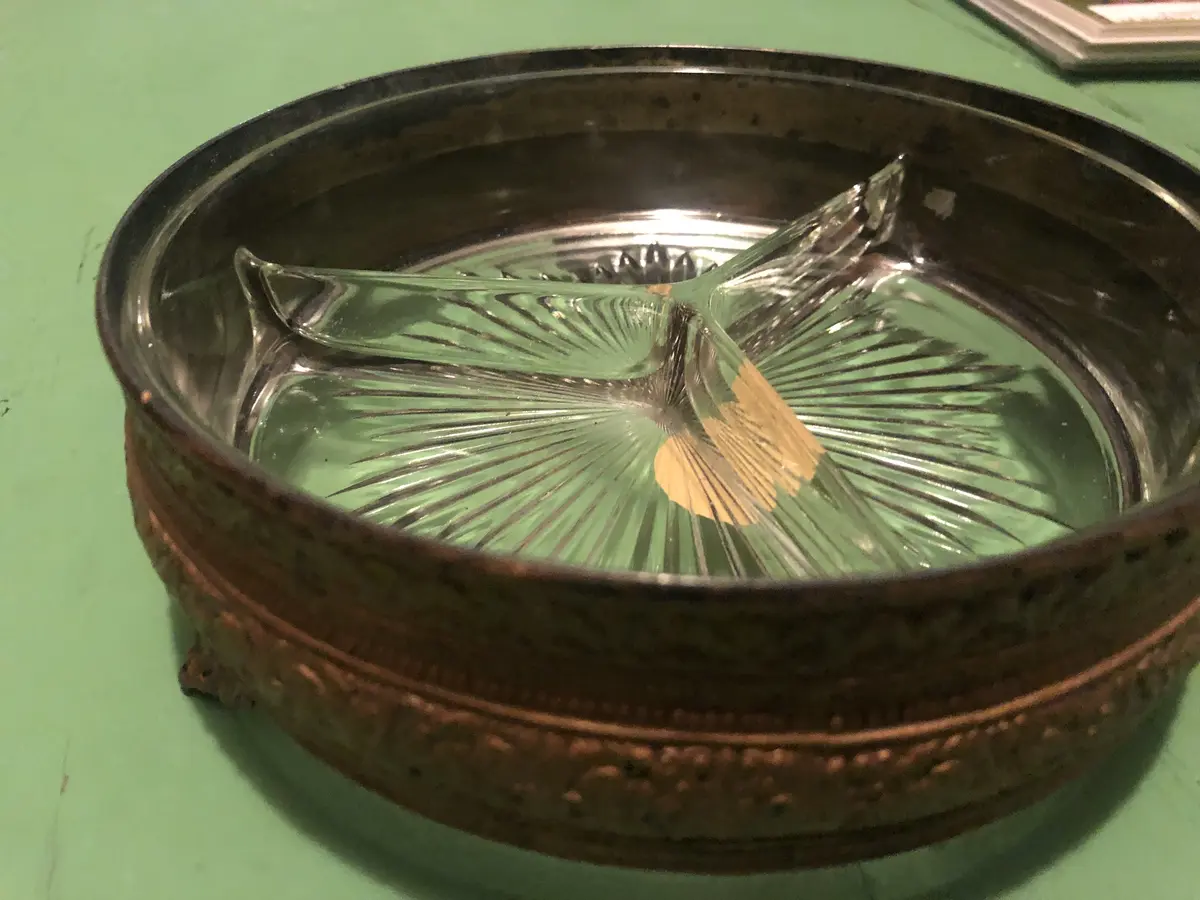 Glass Dish with Metal Stand