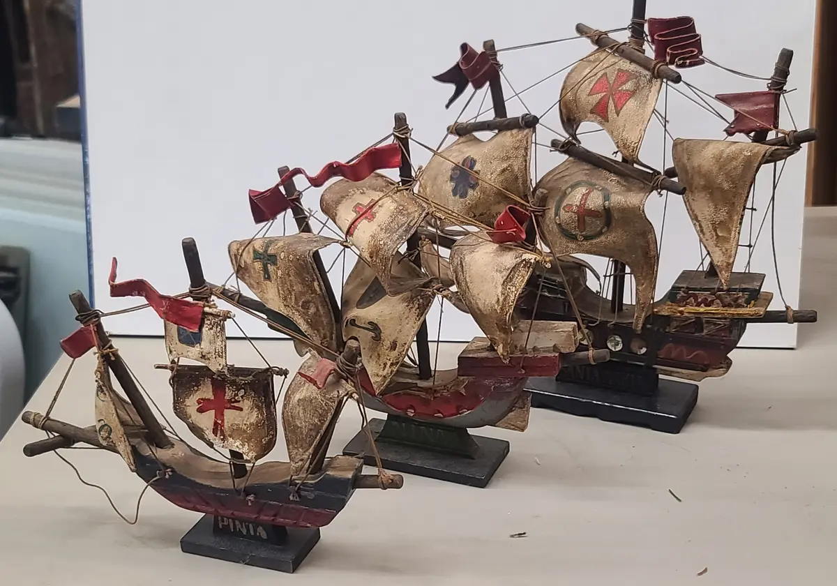 3pc set Nina, Pinata, Santa Maria wooden ships