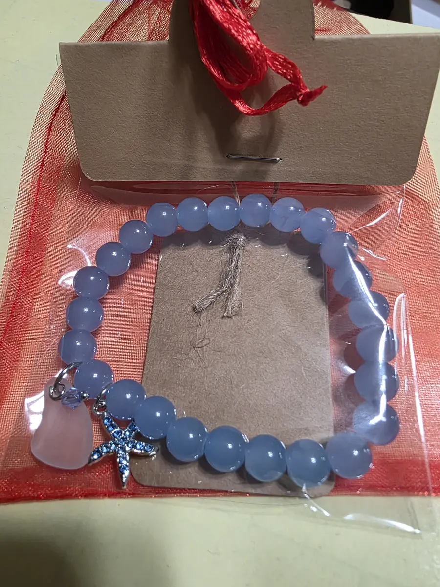 Seaglass glass beaded bracelet w charm
