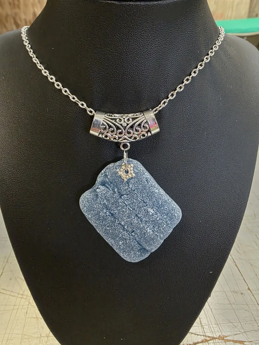 2x2 LG Blue glass necklace