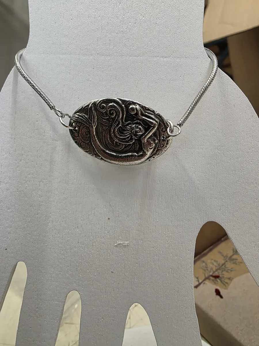 Auth PEWTER Mermaid spell on back